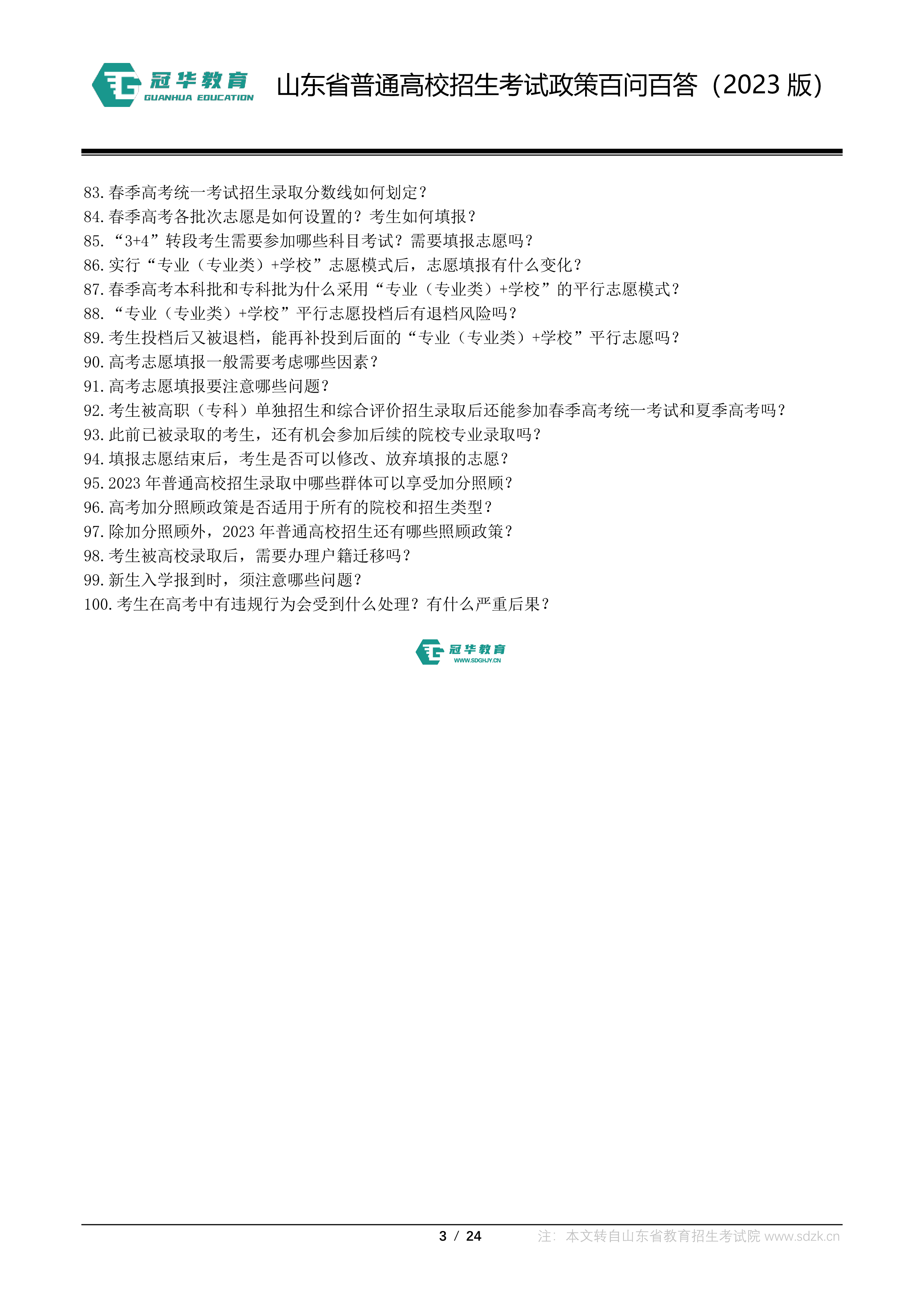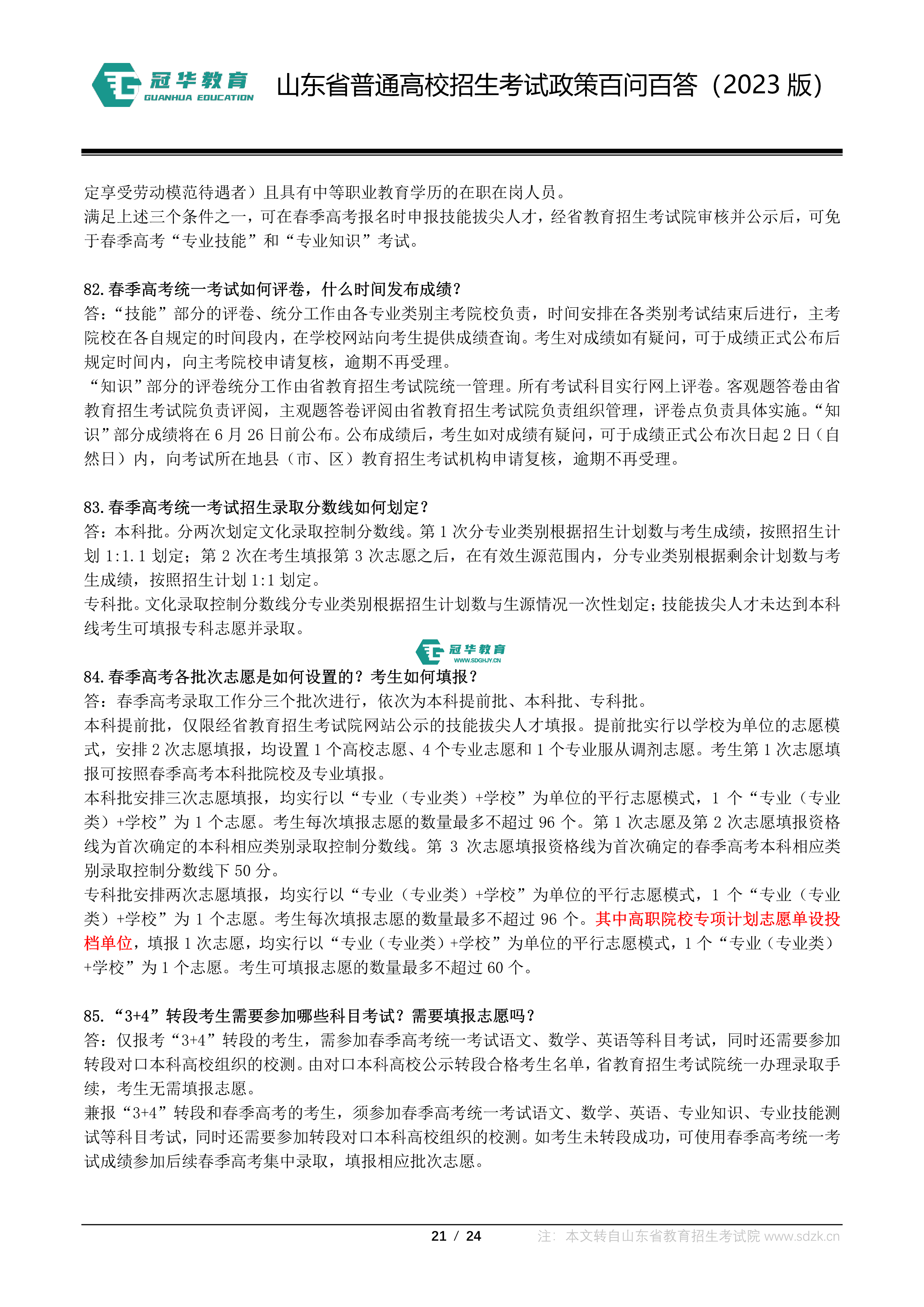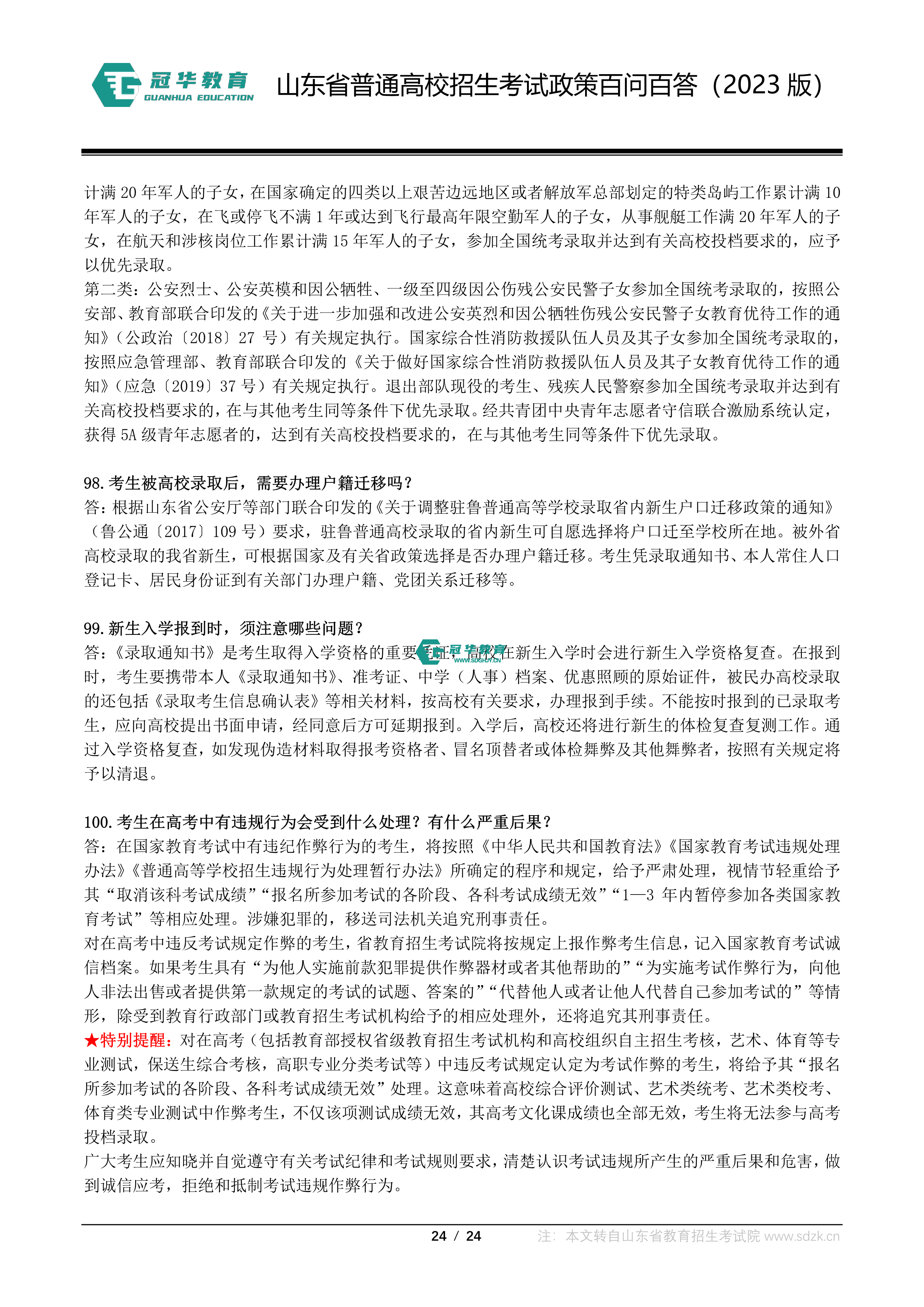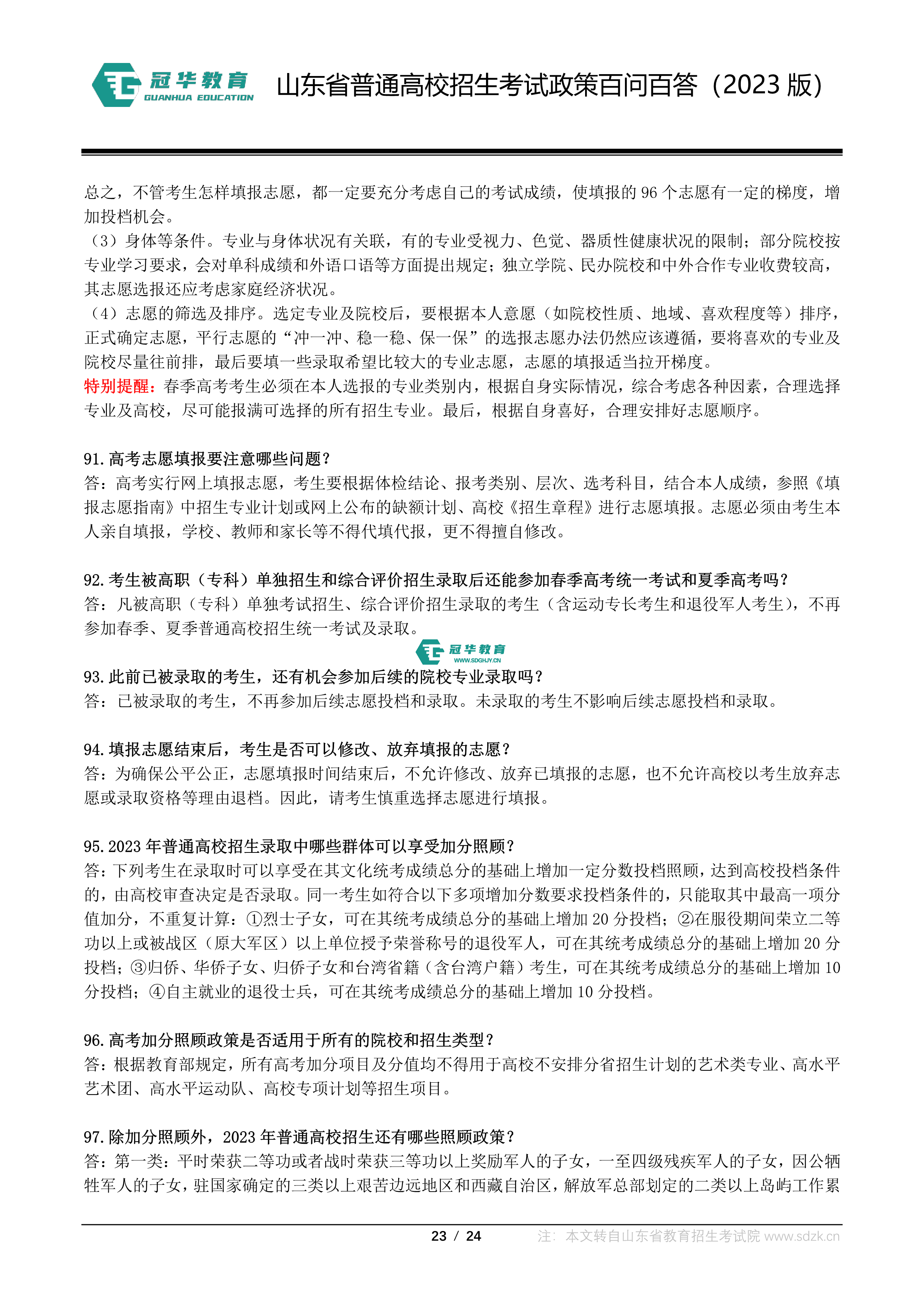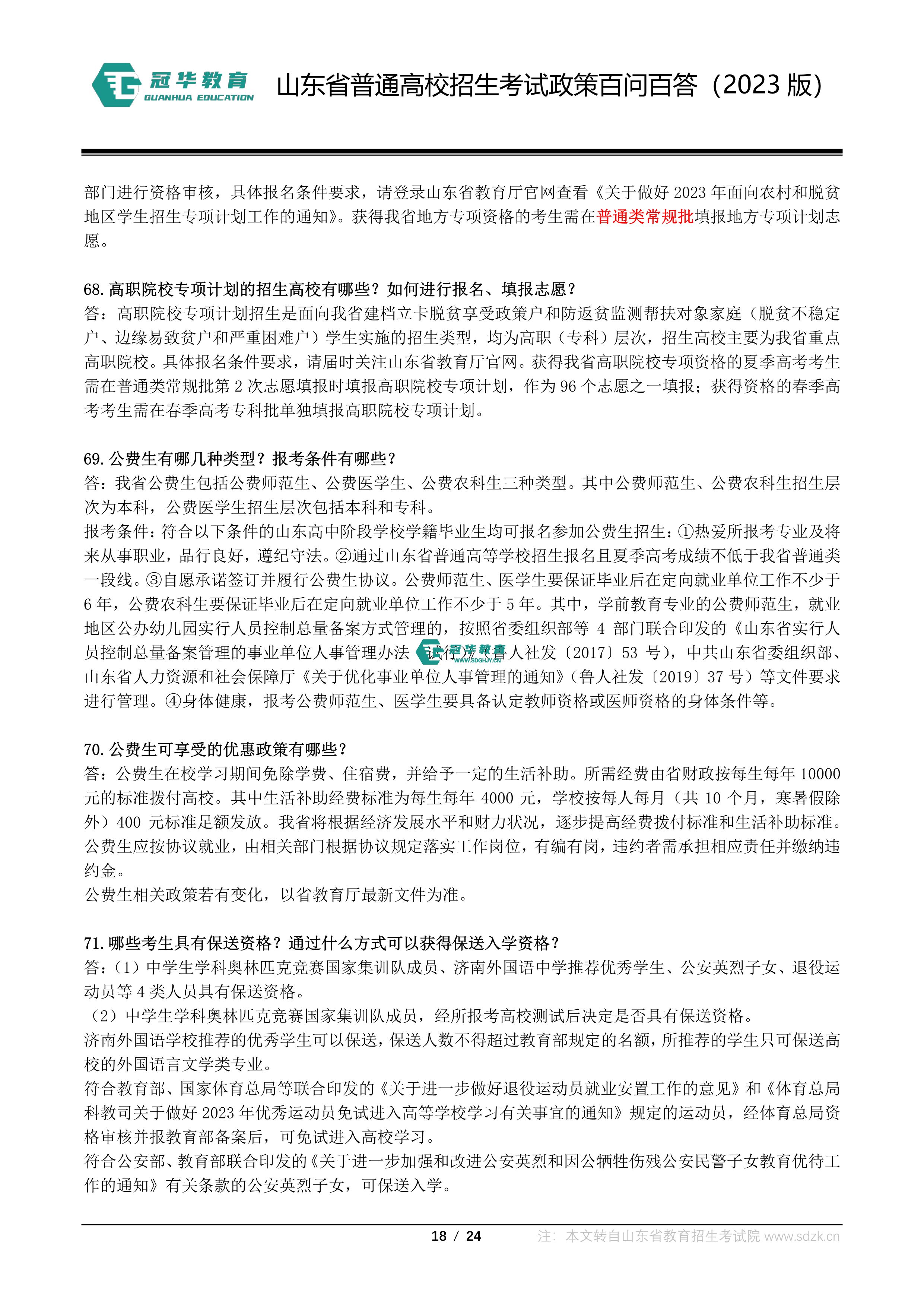山东省普通高校招生考试政策百问百答(2023版 图片版)