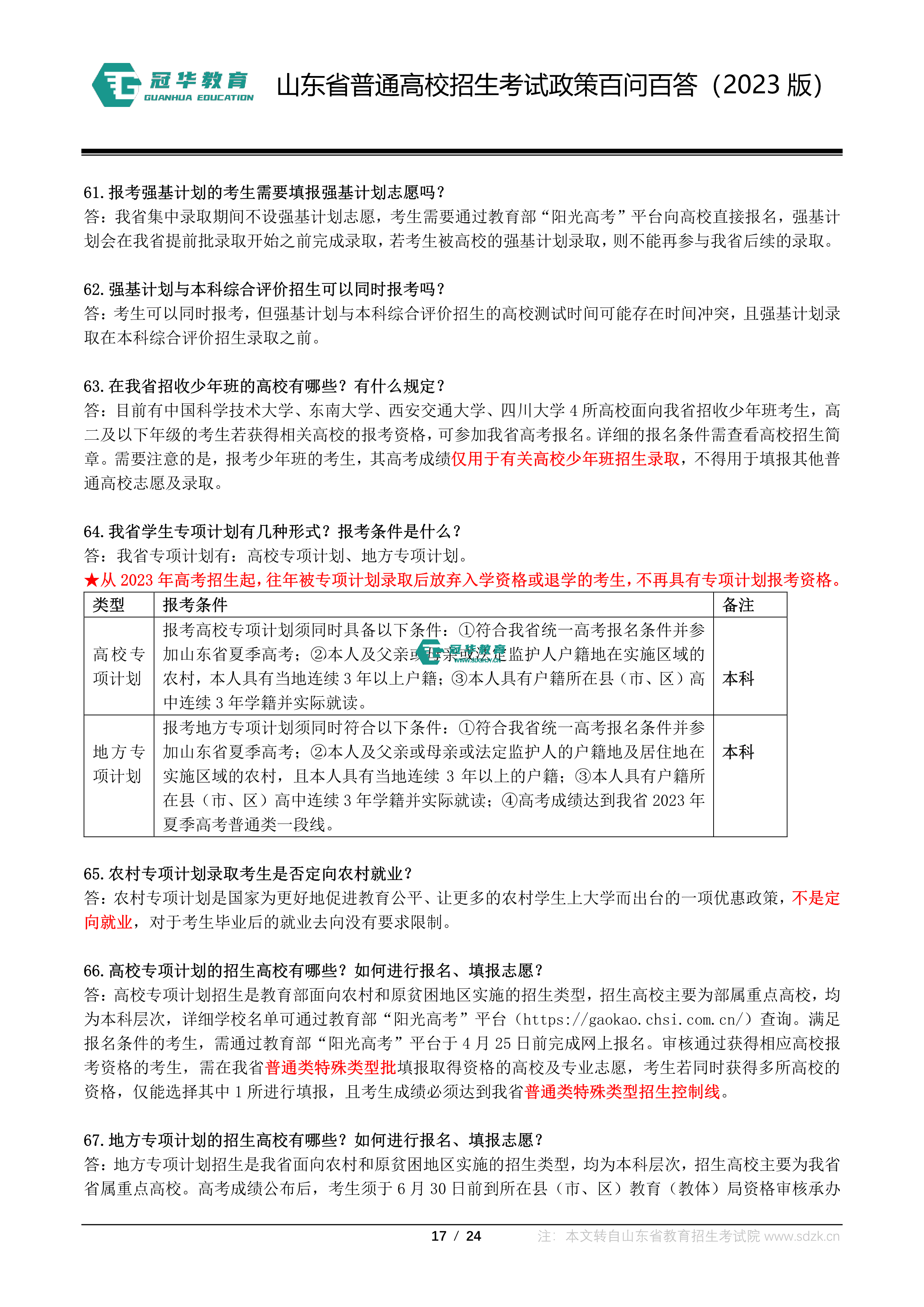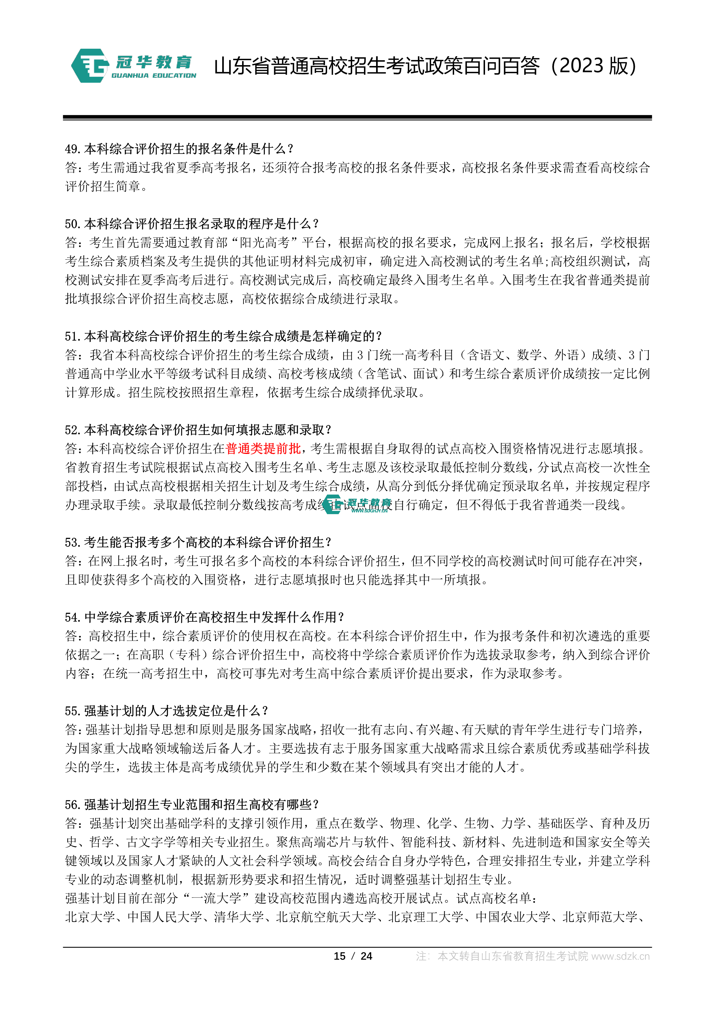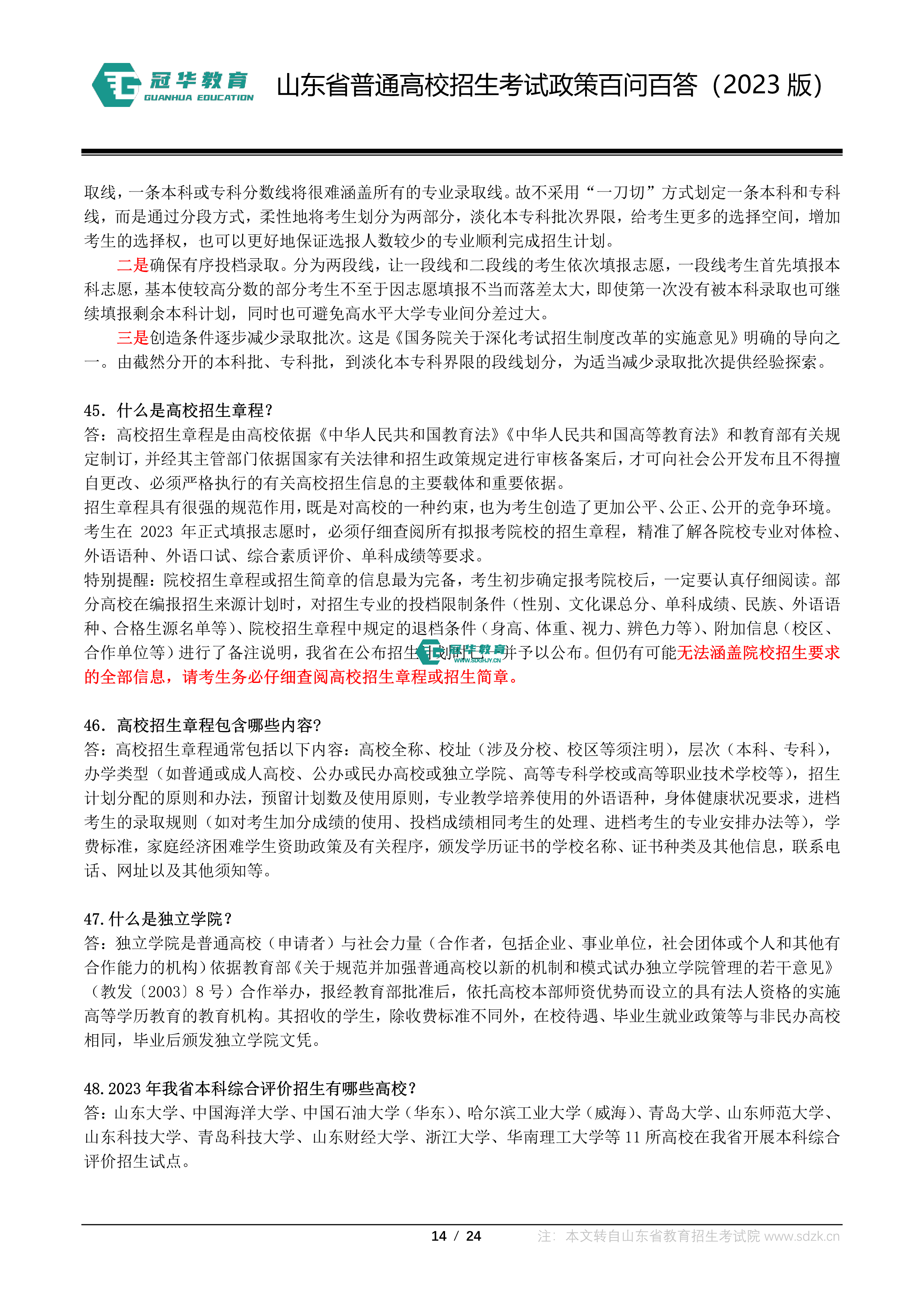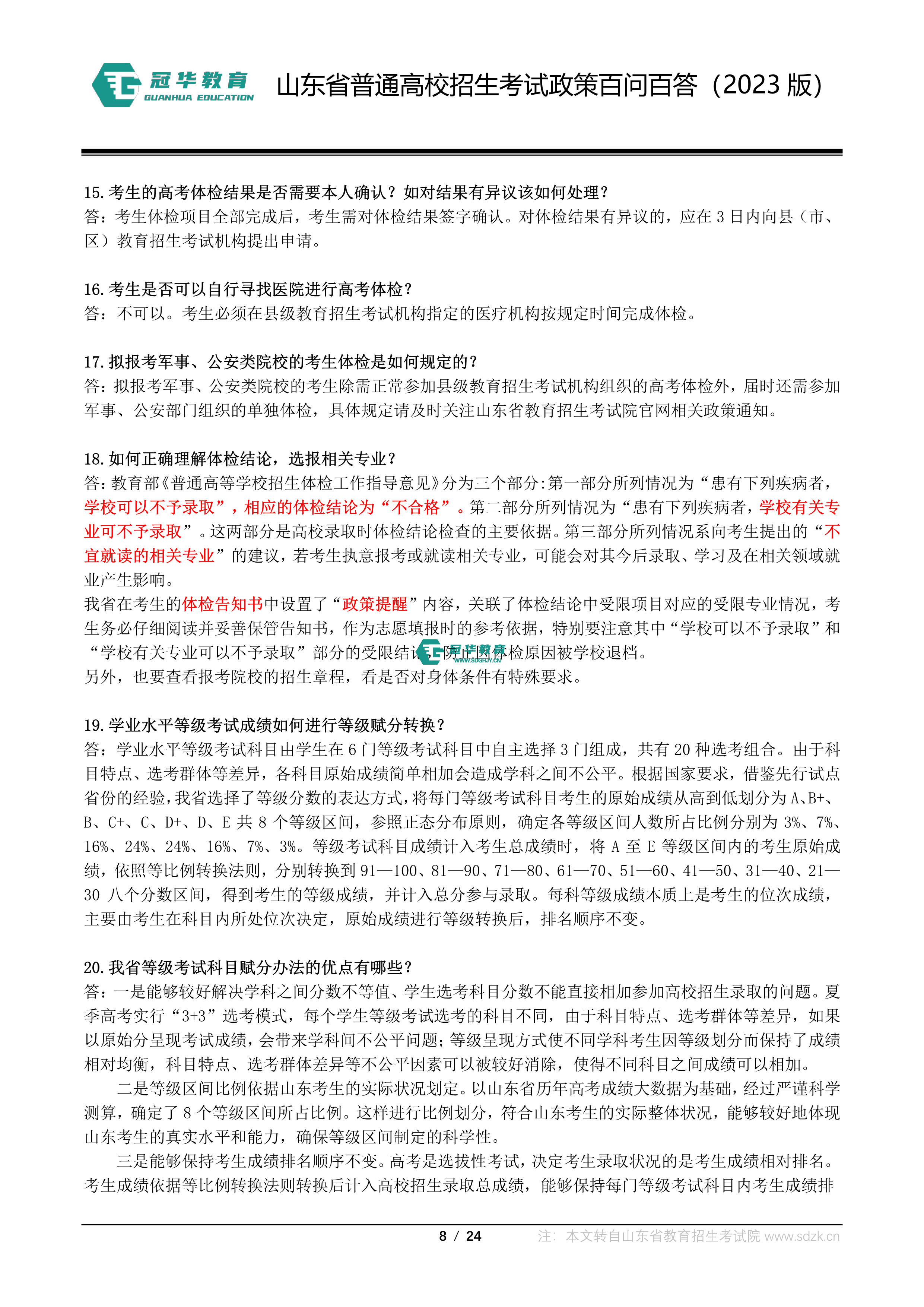 山东省普通高校招生考试政策百问百答(2023版 图片版)