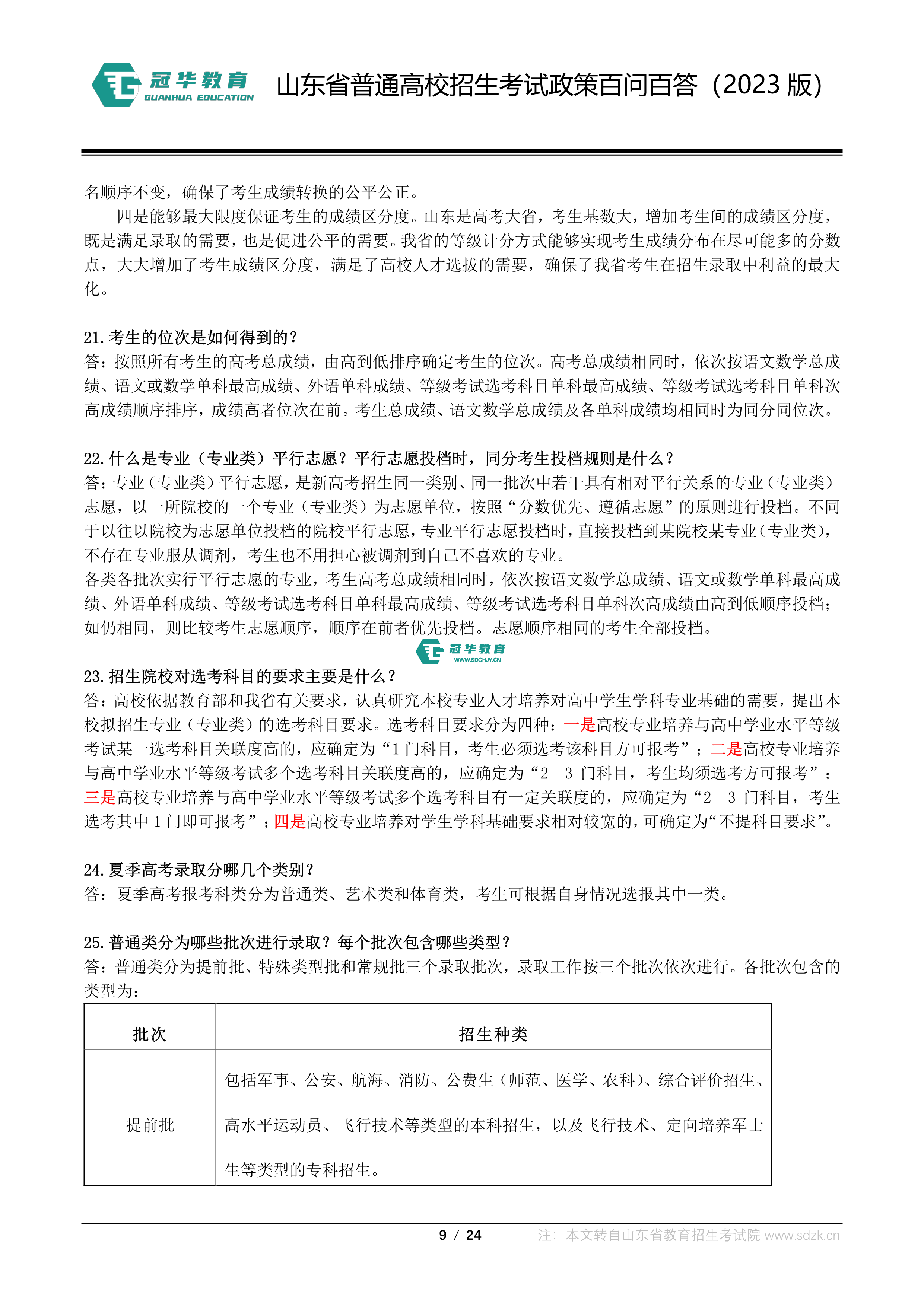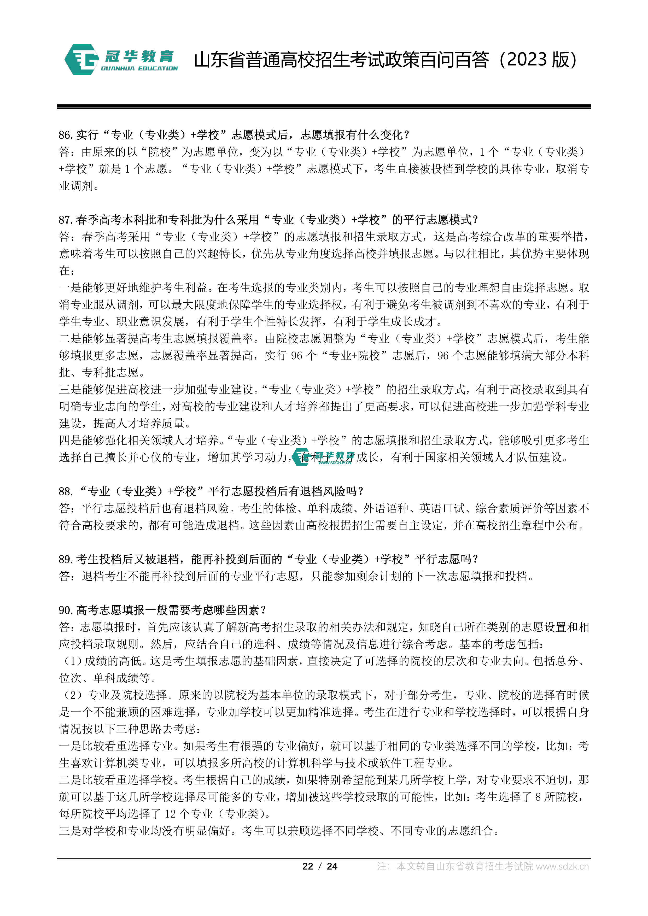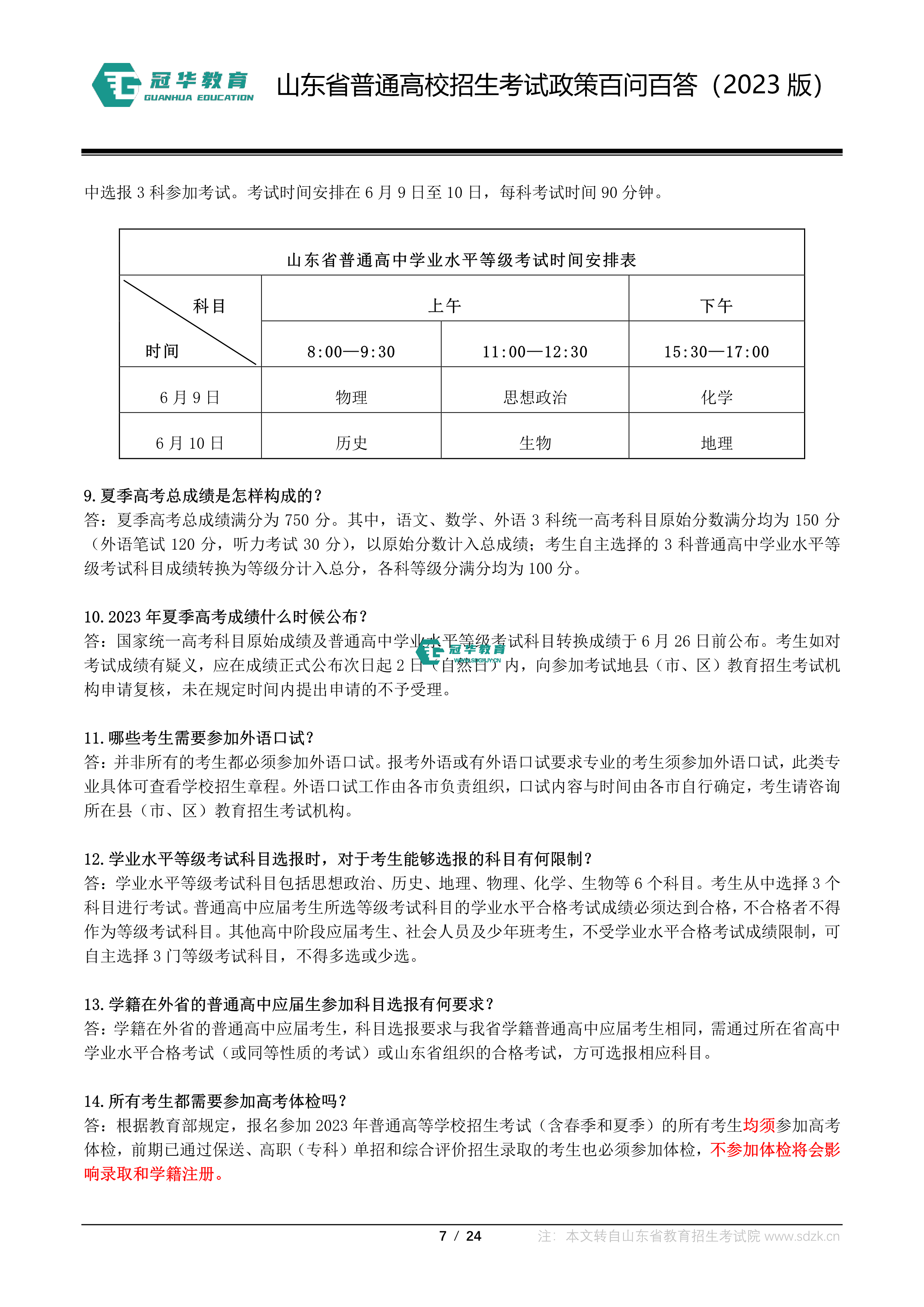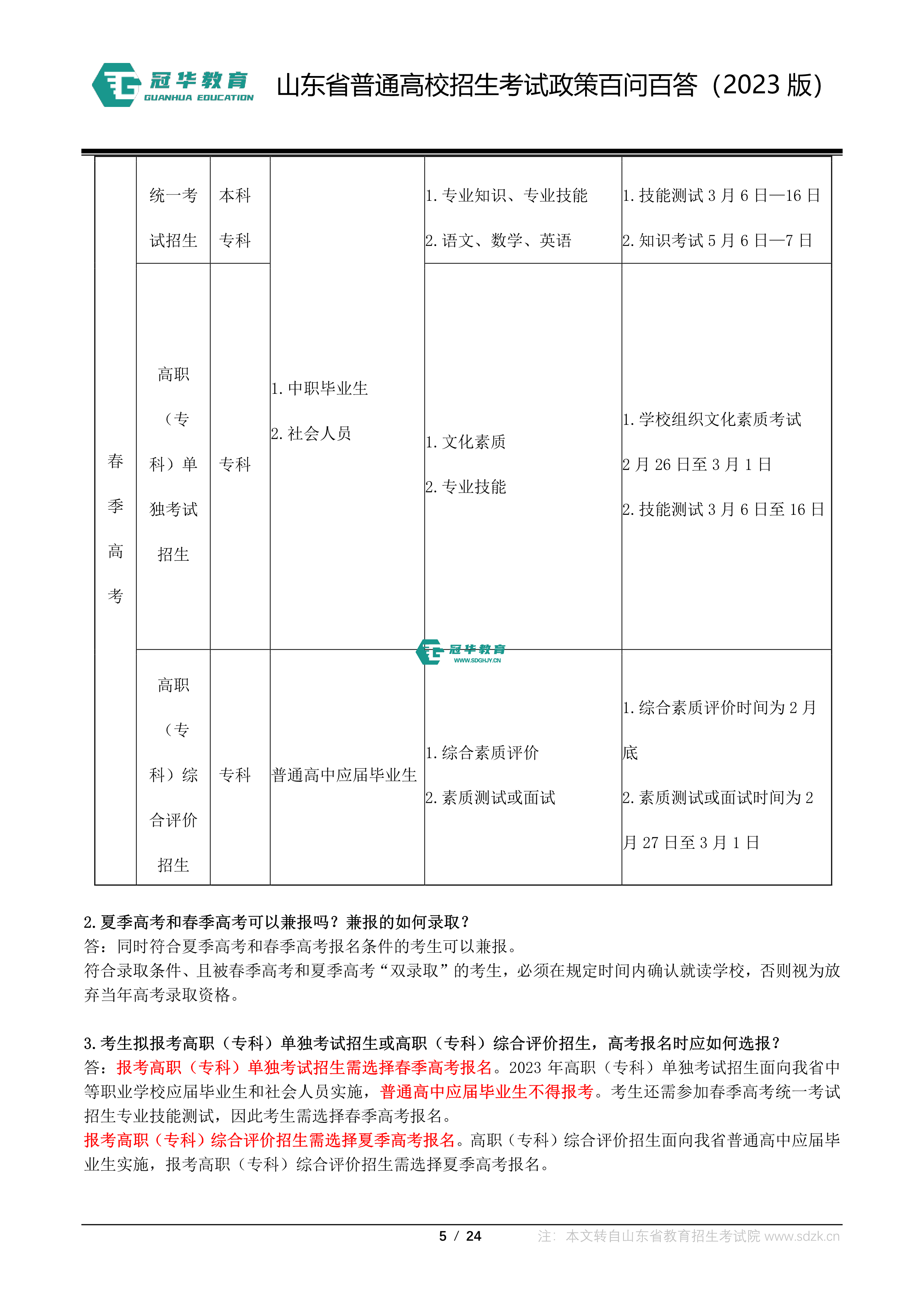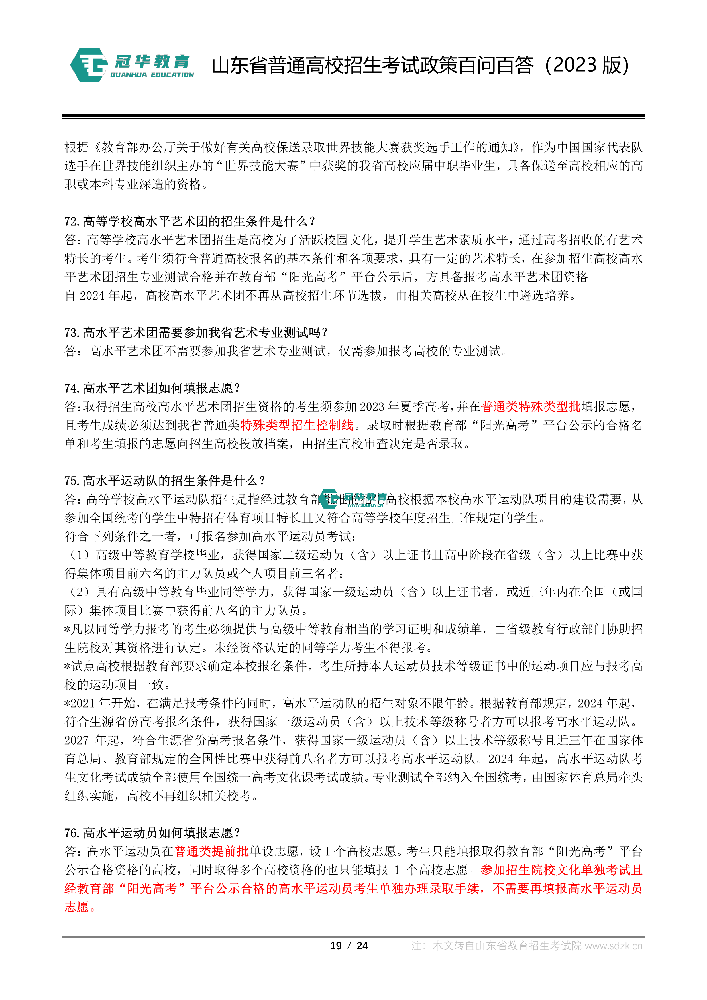 山东省普通高校招生考试政策百问百答(2023版 图片版)