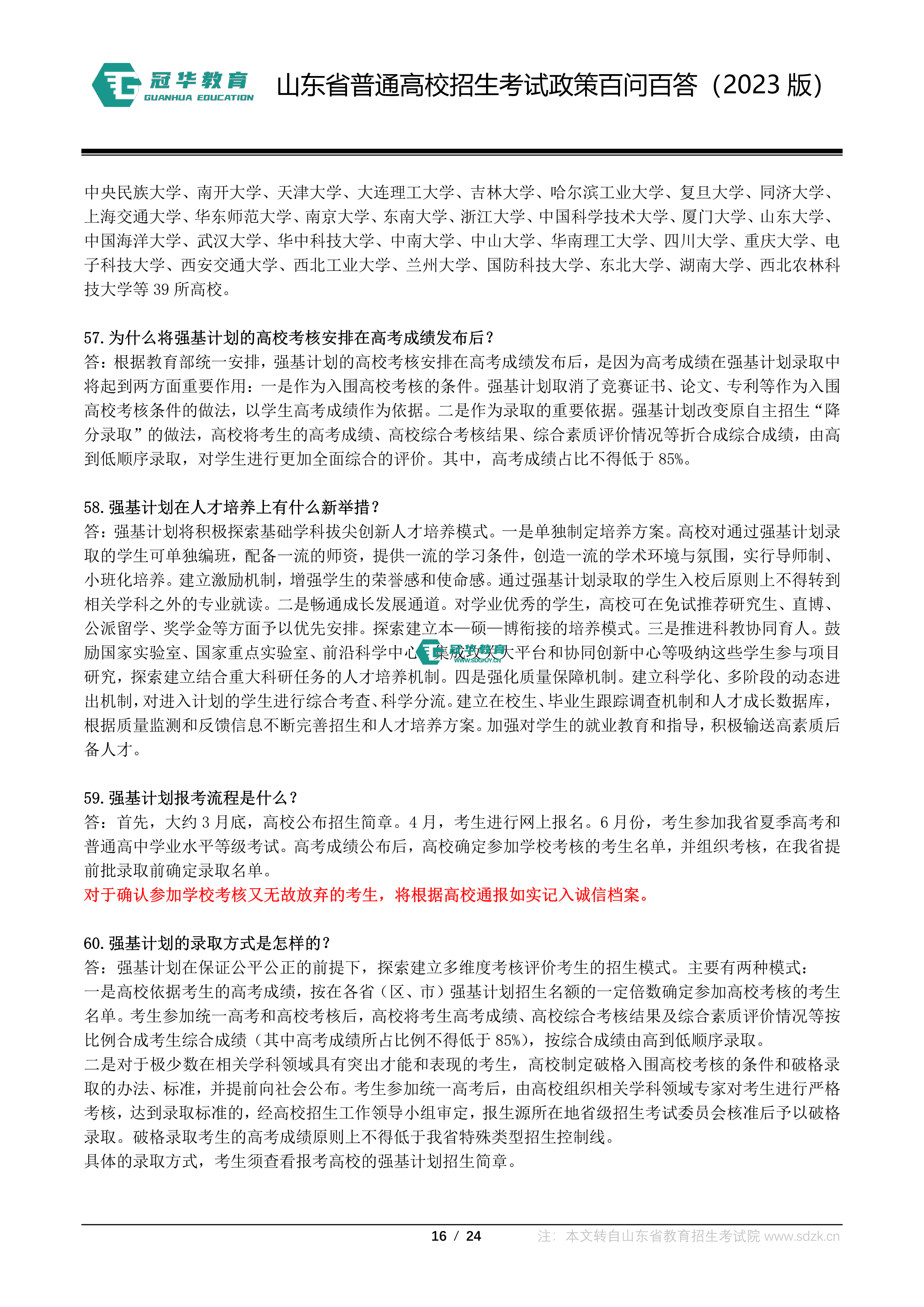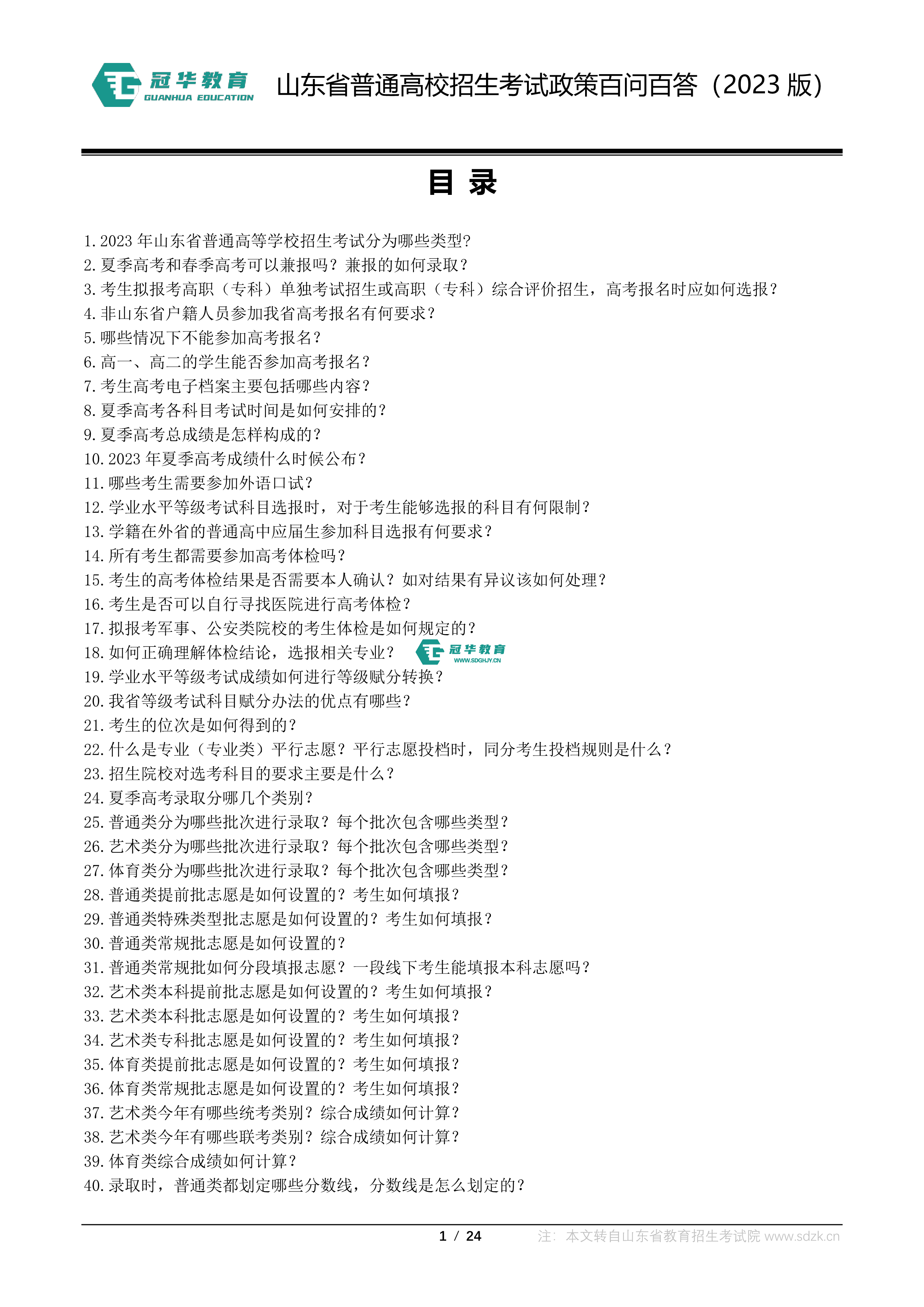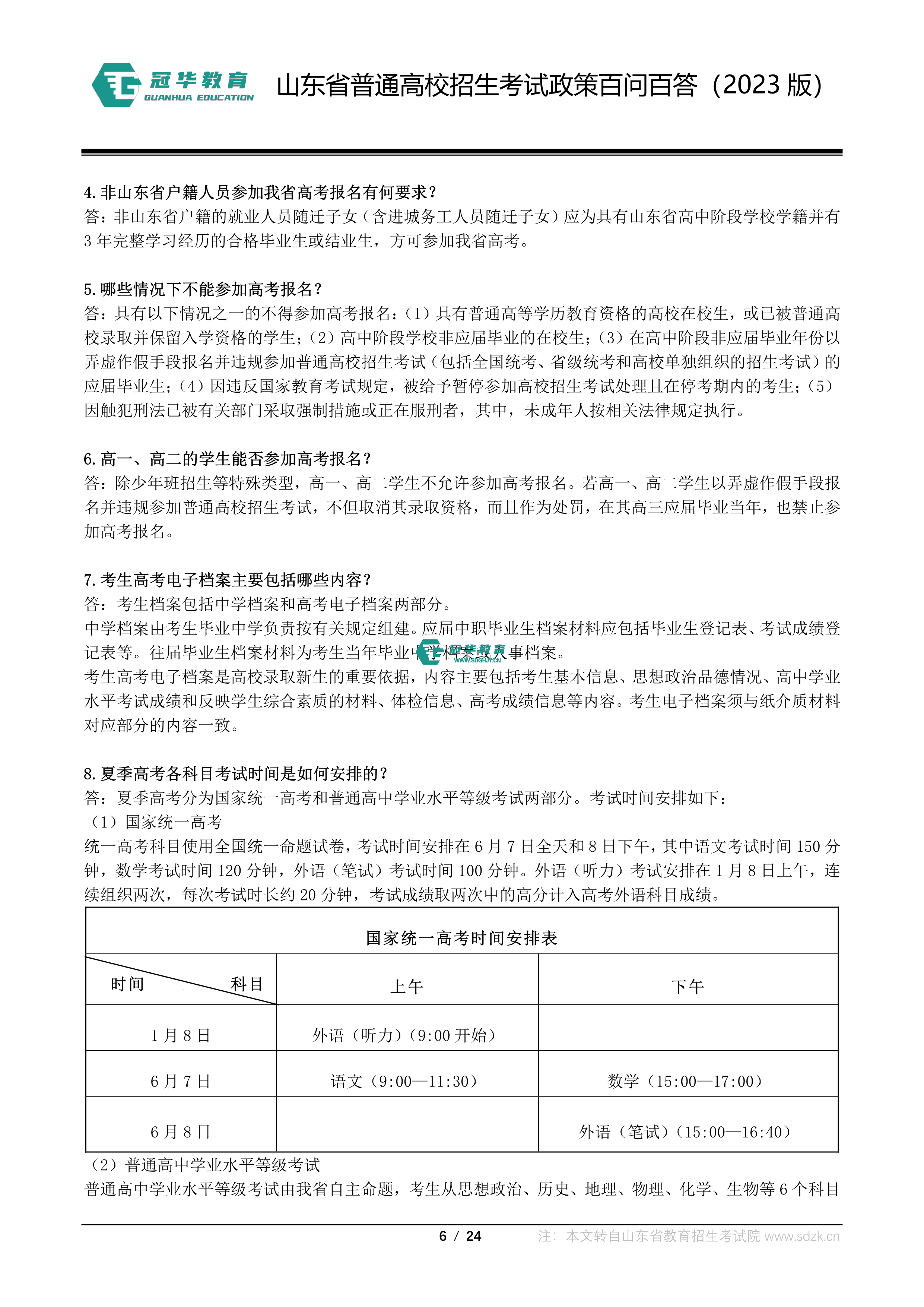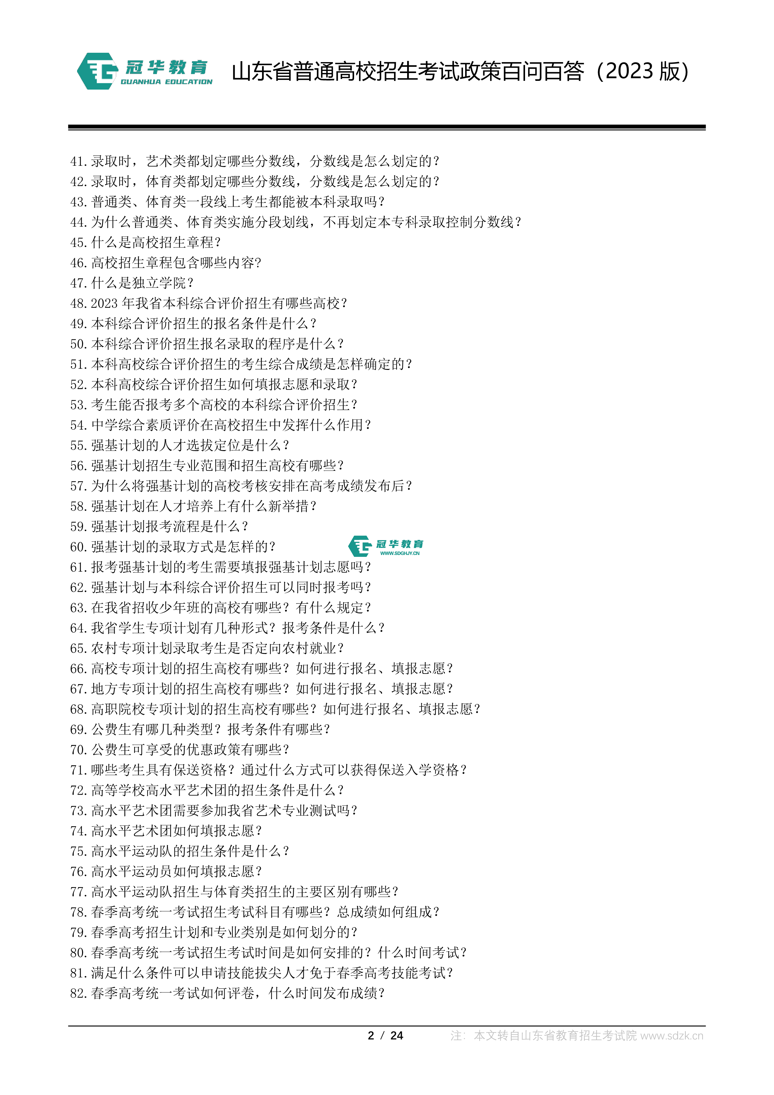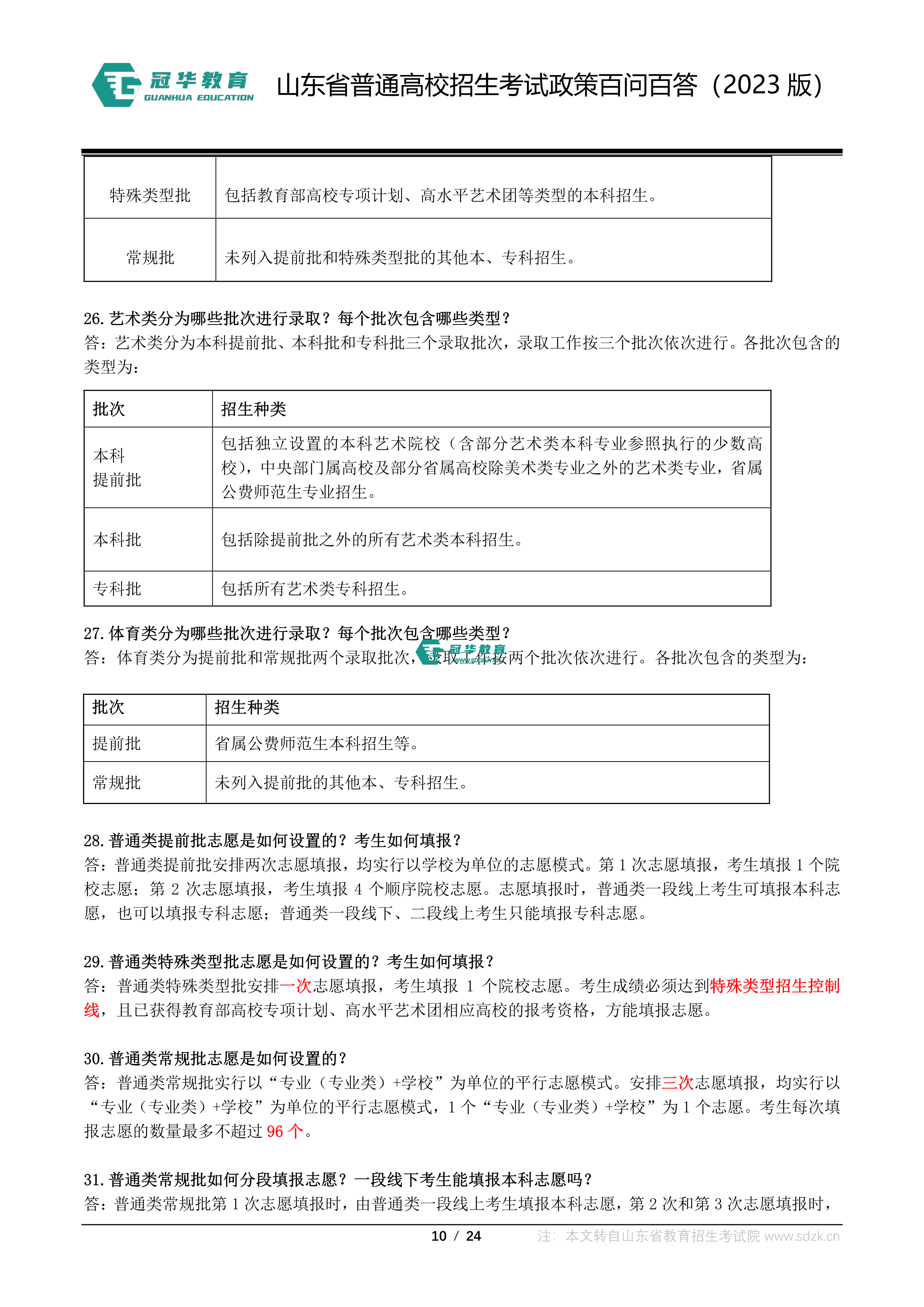 山东省普通高校招生考试政策百问百答(2023版 图片版)